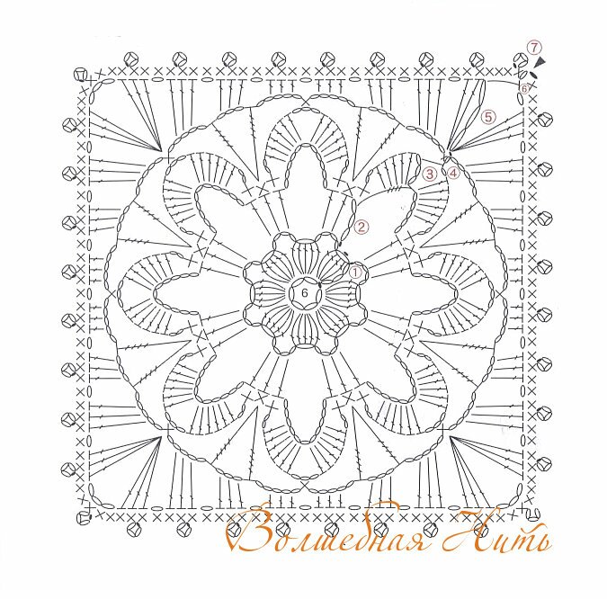 Схема вязания ажурного мотива: