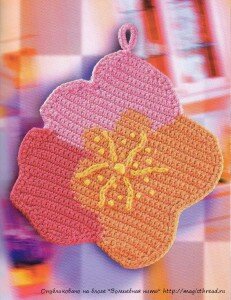 Если выбрать тонкую пряжу, то эта очаровательная коровка легко превратится из прихватки в вязаную аппликацию.